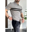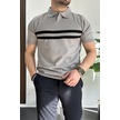 Erkek Açık Yaka Çizgli Tişört Gri Edw236 Gri