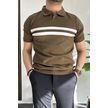 Erkek Açık Yaka Çizgli Tişört Kahverengi Edw236 Kahverengi