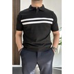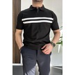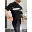 Erkek Açık Yaka Çizgli Tişört Siyah Edw236 Siyah