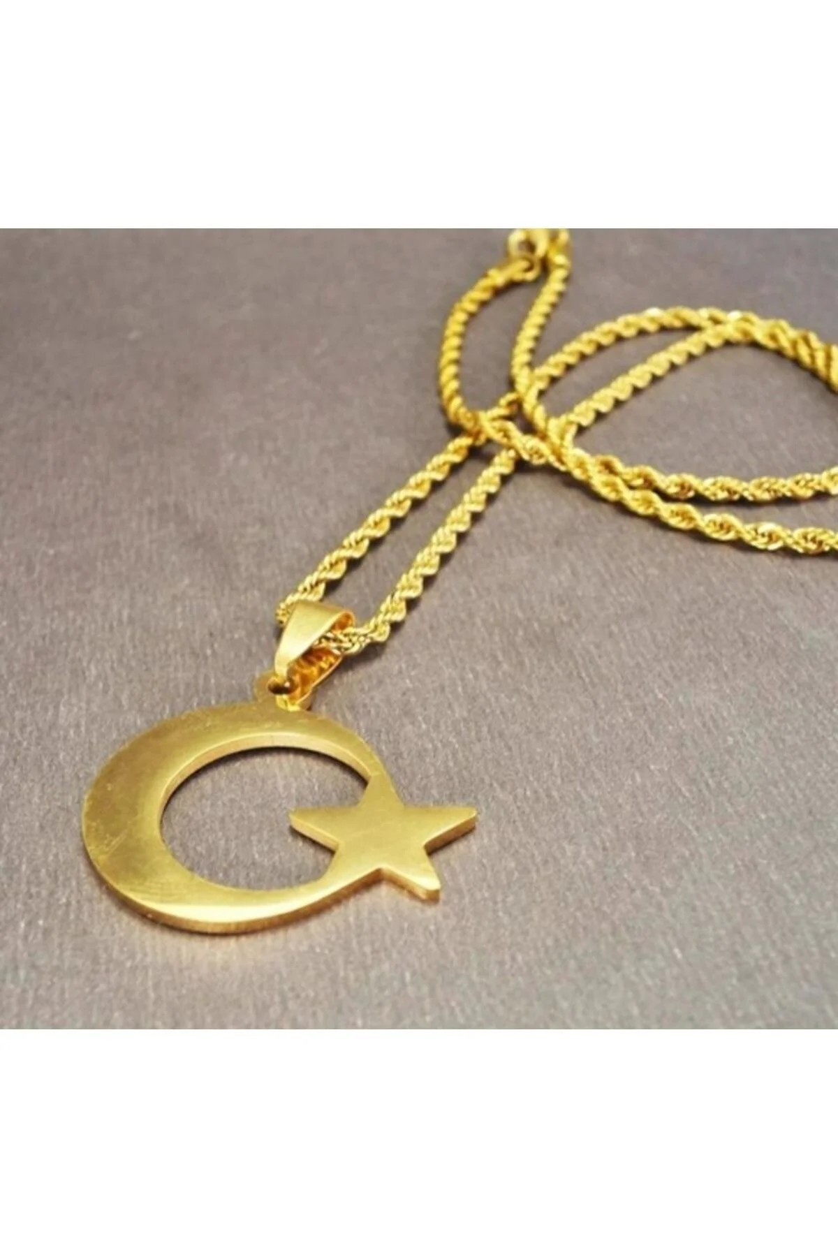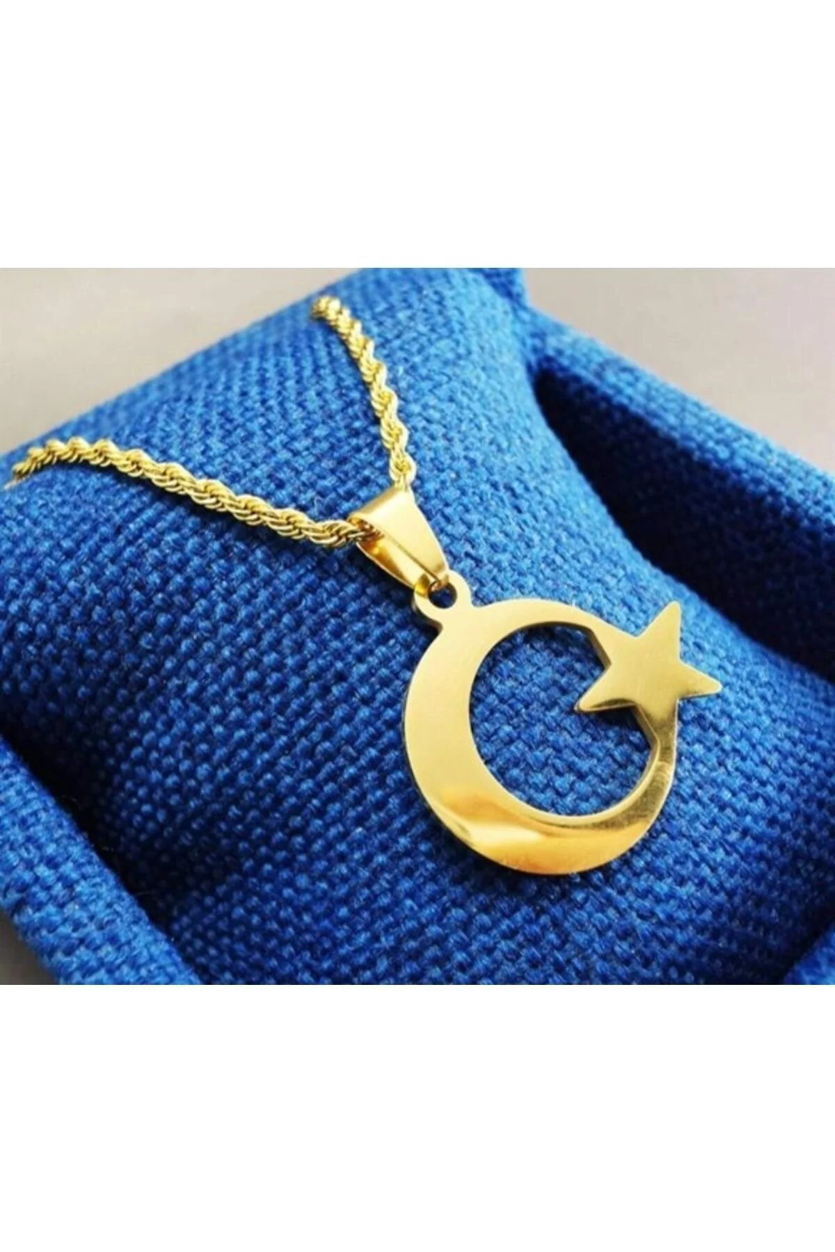 Erkek Ayyıldız Çelik Burgu Zincirli Kolye 7396 Altın