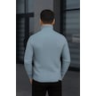 Erkek Balıkcı Yaka Bağazlı Triko Kazak Pamuklu Kalın Fitilli Dokuma, Regular Fit Uzun Kollu Kışlık Model - Bebe Mavisi Siyah