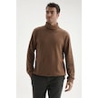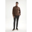 Erkek Balıkçı Yaka Fitilli Kazak Kahverengi Kahverengi