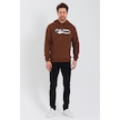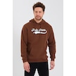 Erkek Baskılı Kapüşonlu 3 İplik Sweatshirt Kahverengi