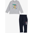 Erkek Bebek Dinazor Baskılı Eşofman Takım-13390-grı Gri