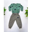 Erkek Bebek Dinazor Baskılı Pamuklu Eşofman Takım-15176 Yesil
