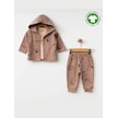 Erkek Bebek Kapüşonlu Dinazor Baskılı 3lü Eşofman Takım-15469 Kahverengi