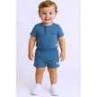 Erkek Bebek Şortlu Takım Bisiklet Yaka Düğmeli Düz Renk mavi