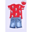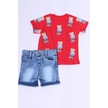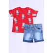 Erkek Bebek Şortlu Takım Kot Şortlu Çıtçıt Detaylı Baskılı B26 Kırmızı