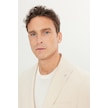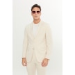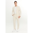 Erkek Bej Slim Fit Dar Kesim Kırlangıç Yaka Kapak Cepli Çizgili Esnek Takım Elbise Bej