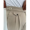 Erkek Bel Toka Detaylı Pileli Old Money Pantolon Bej