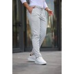 Erkek Beli Bağcıklı Duble Paça Örme Pamuklu Kumaş Jogger Pantolon Gri