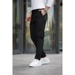 Erkek Beli Bağcıklı Duble Paça Örme Pamuklu Kumaş Jogger Pantolon Siyah