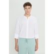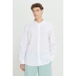 Erkek Beyaz Comfort Fit Rahat Kesim Düğmeli Yaka Keten Gömlek Beyaz