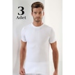 Erkek Beyaz Sıfır Yaka Kısa Kol Fanila Tişört %100 Pamuklu Penye 3'lü Paket Beyaz