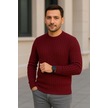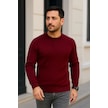 Erkek Bisiklet Yuvarlak Yaka Triko Kazak Pamuklu Kalın Fitilli Dokuma, Regular Fit Uzun Kollu Kışlık Bordo