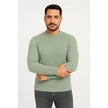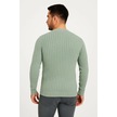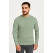 Erkek Bisiklet Yuvarlak Yaka Triko Kazak Pamuklu Kalın Fitilli Dokuma, Regular Fit Uzun Kollu Kışlık Mint Yeşili