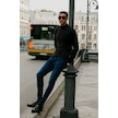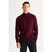 Erkek Bordo Sıyah 2'li Paket Standart Fit Normal Kesim Yarım Balıkçı Yaka Basic Triko Kazak Bordo Sıyah