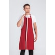 Erkek Boyundan Asmalı Çizgili Barista Şef Mutfak Önlüğü Kırmızı