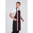 Erkek Boyundan Asmalı Çizgili Barista Şef Mutfak Önlüğü Siyah