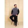 Erkek Büyük Battal Beden Desenli 3 Düğmeli %100 Pamuk Mevsimlik Uzun Kol Cepli Pijama Takımı Gri-siyah