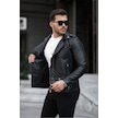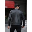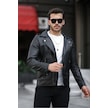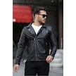 Erkek Çapraz Fermuarlı Deri Ceket Siyah