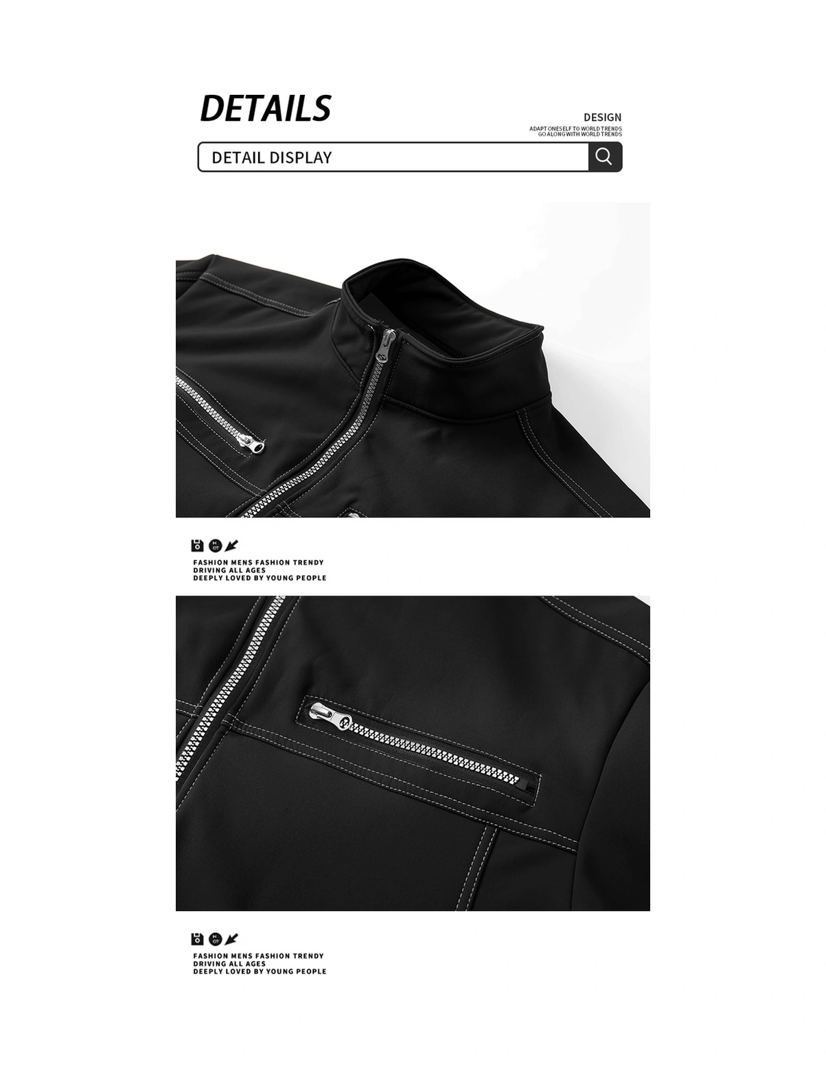 Erkek Ceket Dik Yaka Erkek Günlük Bol Moda Üstler Siyah