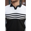 Erkek Çizgi Desenli Yakalı Kısa Kollu T-shirt Siyah