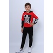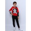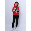 Erkek Çocuk 3 İplik Eşofman Takımı Baskılı Kapşonlu D32 Kırmızı
