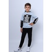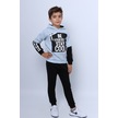Erkek Çocuk 3 İplik Eşofman Takımı Baskılı Kapşonlu D32 Mavi