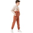 Erkek Çocuk 76 Desenli Kanguru Cepli Kapüşonlu Kahverengi Renk Eşofman Takımı Kahverengi