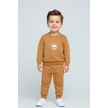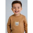 Erkek Çocuk Aslan Nakışlı 2 Li Takım Sweatshirt Ve Alt Eşofman %100 Pamuk Kahverengi