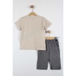 Erkek Çocuk Atletik Baskılı Şortlu Takım-6292-Kahverengi