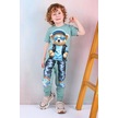 Erkek Çocuk Ayı Desenli Kısa Kollu Tshırt Eşofman 2'li Takım-1085 Yeşil