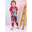 Erkek Çocuk Ayı Desenli Kısa Kollu Tshırt Eşofman 2'li Takım-1092 Kırmızı