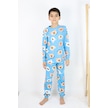 Erkek Çocuk Baskılı İnterlok Kumaş Uzun Kollu Pijama Takımı Açık Mavi