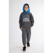 Erkek Çocuk Baskılı Kapşonlu Eşofman Takımı Koyu Gri