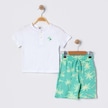 Erkek Çocuk Beyaz Basic Tişörtlü Palmiye Desenli Şortlu Takım-1138 Beyaz