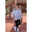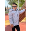Erkek Çocuk Çıkarılabilir Kapüşonlu Baskılı Yakası Detaylı Kışlık Mont Km3501 Gri