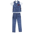 Erkek Çocuk Düğme Kapama Kot Yelek Tişört Kot Pantolon Üçlü Takım