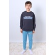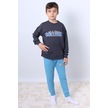 Erkek Çocuk Eşofman Takımı College Kabartmalı 4 Mevsim Ribanalı F6 Mavi