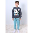 Erkek Çocuk Eşofman Takımı Mickey Mouse Baskılı Ribanalı F4 Turkuaz