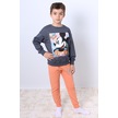 Erkek Çocuk Eşofman Takımı Mickey Mouse Baskılı Ribanalı F4 Turuncu