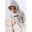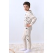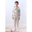 Erkek Çocuk Kapşonlu Eşofman Takımı 4 Mevsim Wolf Baskılı Ribanalı F12 Bej