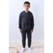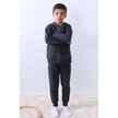 Erkek Çocuk Kapşonlu Eşofman Takımı Kurt Baskılı F10 Füme