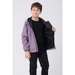 Erkek Çocuk Mürdüm İçi Astarlı Su Ve Rüzgar Geçirmez Kapüşonlu Çift Fermuarlı Cepli Mont Mürdüm
