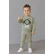 Erkek Çocuk Nakışlı İki Parça Eşofman Takımı %100 Pamuk Yeşil