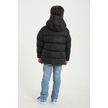 Erkek Çocuk Siyah İçi Polarlı Kapüşonlu Su Geçirmez Rüzgara Dayanıklı Cepli Şişme Kışlık Mont Siyah