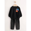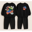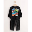 Erkek Çocuk Siyah Renk Araba Baskılı Sırt Detaylı Sweatshirt Kareli Jogger Eşofman Alt Üst Takım Siyah