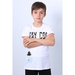 Erkek Çocuk Tişört Stay Cool Baskılı Bisiklet Yaka F18 Beyaz