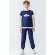 Erkek Çocuk Upper Baskılı 3 İplik Kalın Kışlık Eşofman Takımı Ak4231 Lacivert